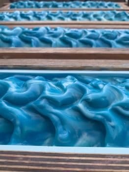 I lurve soap tops. Fancy or plain, swirled or textured, it really doesn’t matter to me, I love them all. My favourite posts on Instagram are often the tops of bars, wet or dry, in the mould or cut… So, having had a really busy day trying to finish off everthing before the weekend (and not having spared a single thought for today’s blog post) I thought I’d share some favourite pics of some of my recent soap tops.